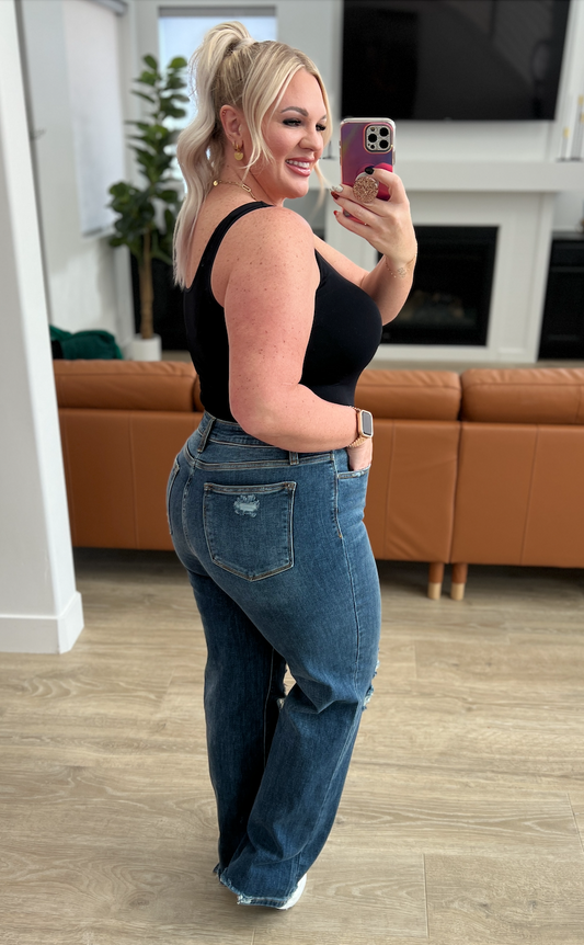 Sample Sale: 13/31 Rose High Rise 90's Straight Jeans in Dark Wash Judy Blue