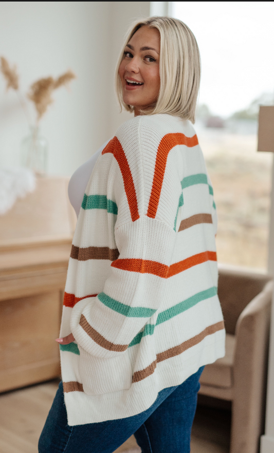 SAMPLE SALE: LARGE Long Drive Home Striped Cardigan