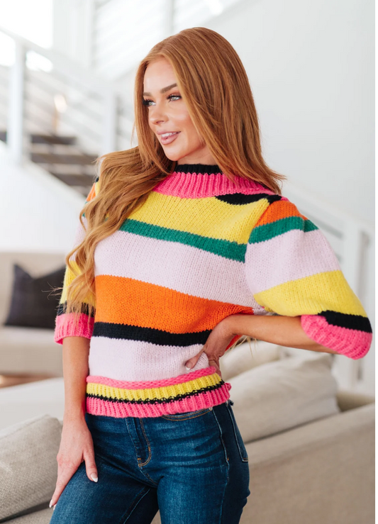 SAMPLE SALE: XLARGE BRIGHT SIDE STRIPED SWEATER