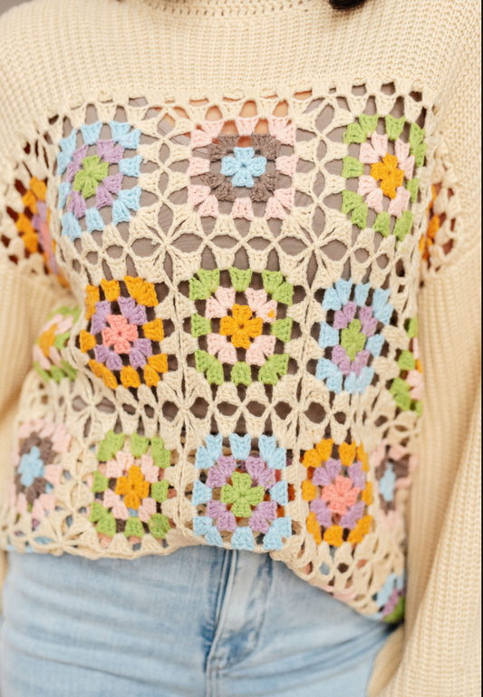 SAMPLE SALE: LARGE Square Dance Granny Square Sweater