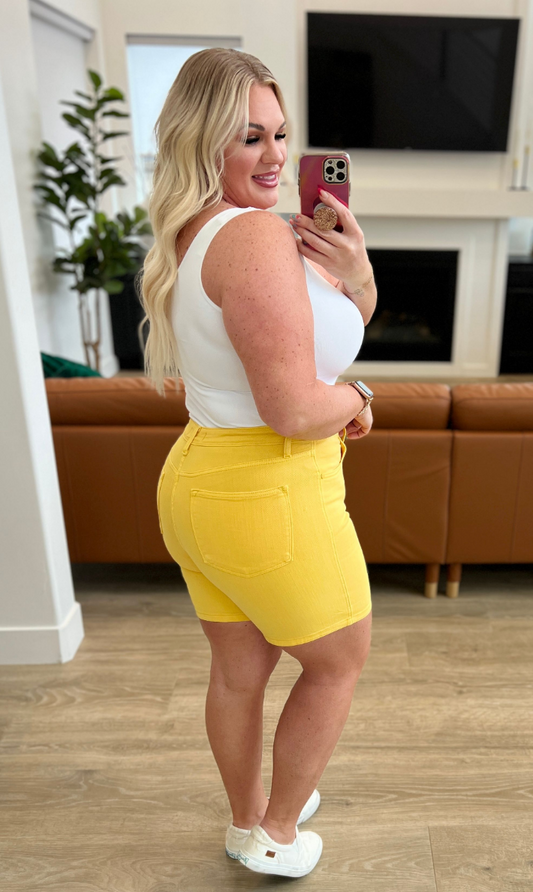 SAMPLE SALE: XL JENNA HIGH RISE CONTROL TOP CUFFED SHORTS IN YELLOW