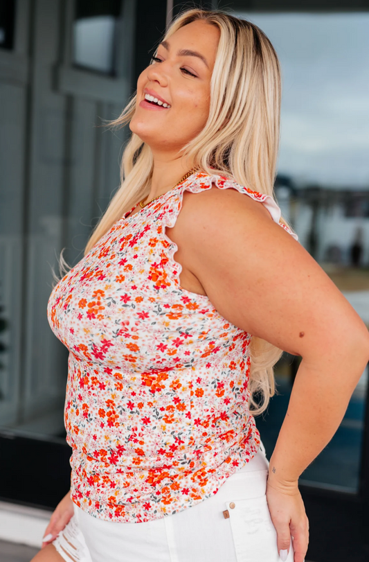 Sample Sale: XLarge SWEET SOMETHING FLUTTER SLEEVE FLORAL TOP