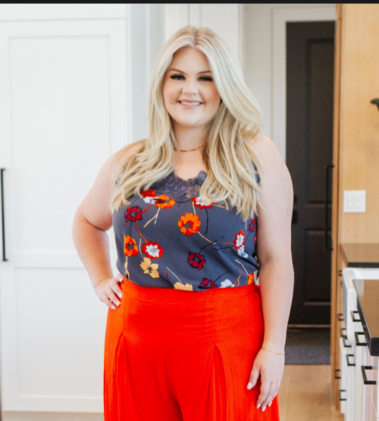 SAMPLE SALE: XL Tell Me Darling Lace Trim Floral Cami