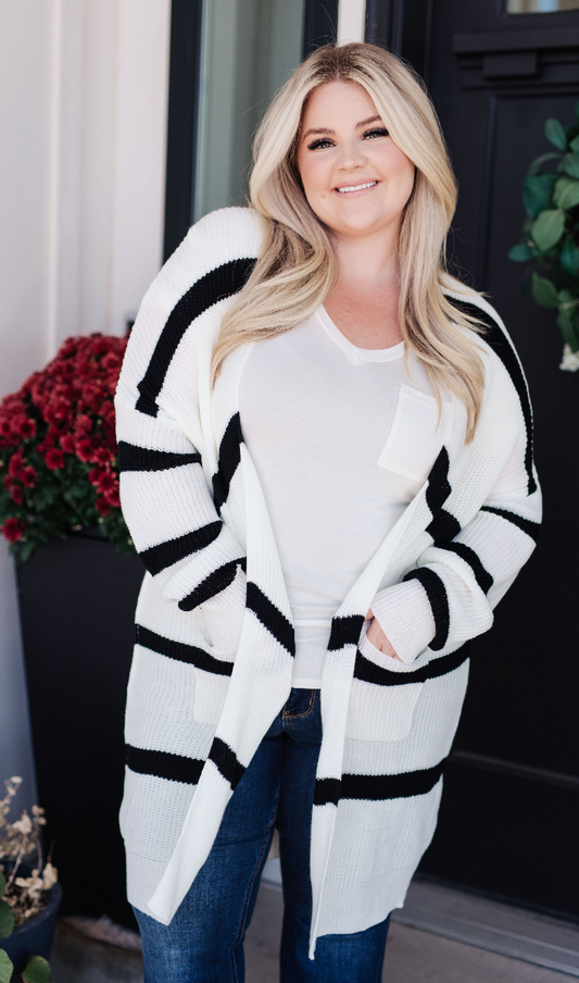 SAMPLE SALE: Large Brighter is Better Striped Cardigan in Ivory