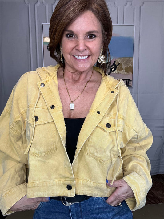 Cropped Hooded Denim Jacket in Mustard
