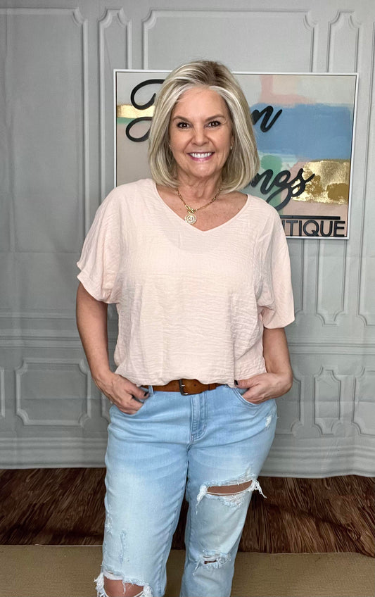 Frequently Asked Questions V-Neck Top in Blush